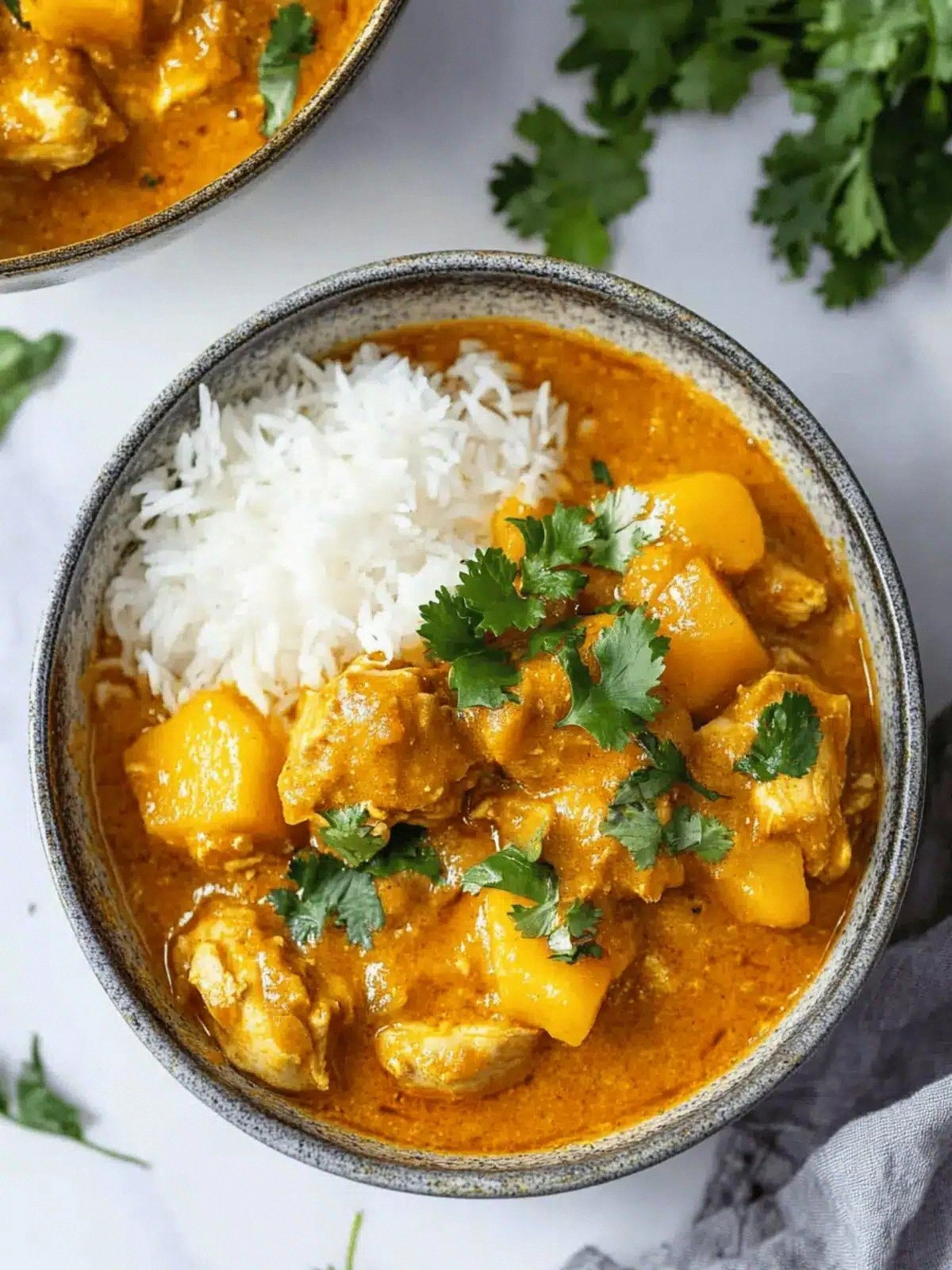Omit the chicken and add a cup of chickpeas or tofu for protein. Increase the tomato puree to 1.5 cups to deepen the base. Keep the mango and coconut cream for sweetness. This plant-based curry is hearty and satisfying, perfect for a meatless dinner.